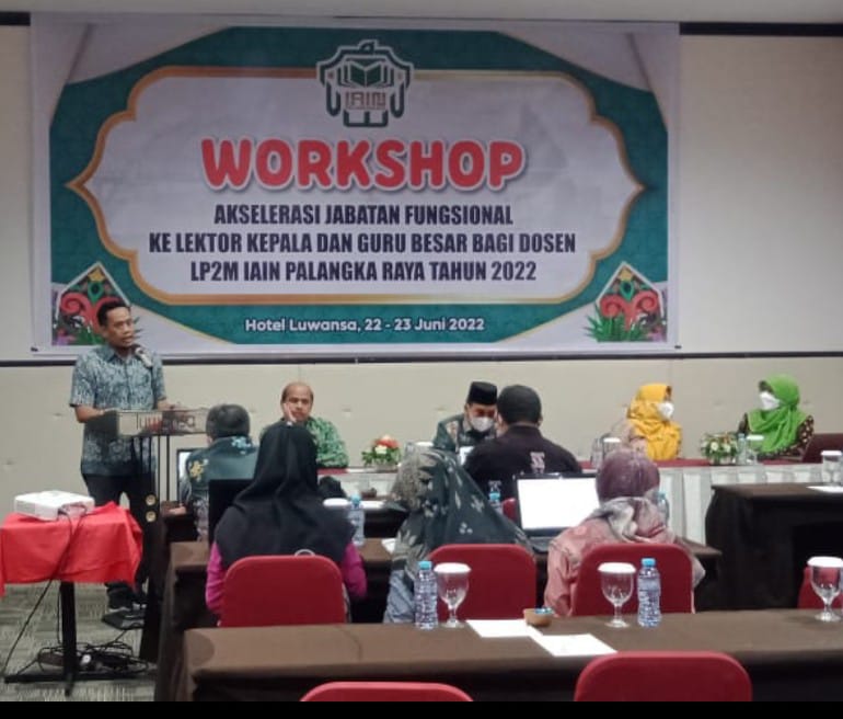 Maharati News – Palangka Raya, Lembaga Penelitian dan Pengabdian kepada Masyarakat (LP2M) Institut Agama Islam Negeri (IAIN) Palangka Raya, kembali melaksanakan kegiatan Workshop Akselerasi Jabatan Fungsional Ke Lektor Kepala dan Guru Besar Bagi Dosen di lingkungan IAIN Palangka Raya, di Luwansa Hotel Palangka Raya.