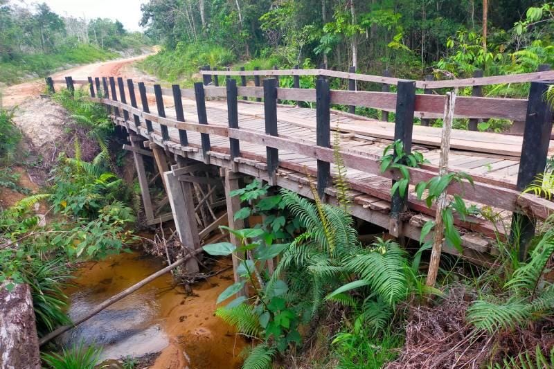 “Pada segmen 1 terdapat 15 buah jembatan kayu kelas 2 dengan rincian yang di buatkan baru Panjang 14 meter 3 buah, Panjang 10.5 meter 1 buah, Panjang 4 meter 7 buah, sedangkan terdapat jembtan 4 buah hanya di rapikan/perbaikan, tetapi tidak di bayar,” karena keterbatasan anggaran, tegas Bambang.