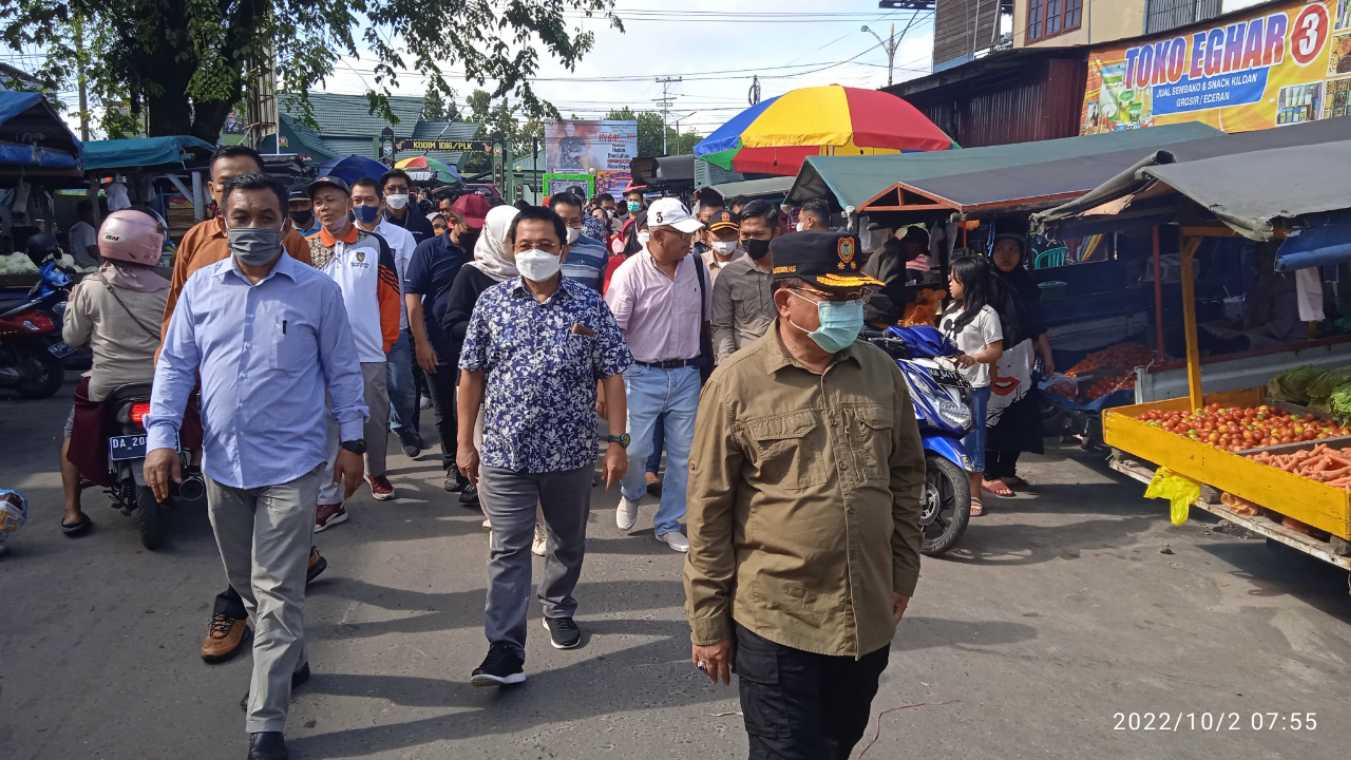 Maharati News – Palangka Raya, Sekretaris Daerah Provinsi Kalteng H. Nuryakin didampingi Tim Pengendali Inflasi Daerah (TPID) dan Satgas Pangan melakukan pemantauan harga dan stok bahan pangan di sejumlah titik pasar, Minggu (2/10/22).
