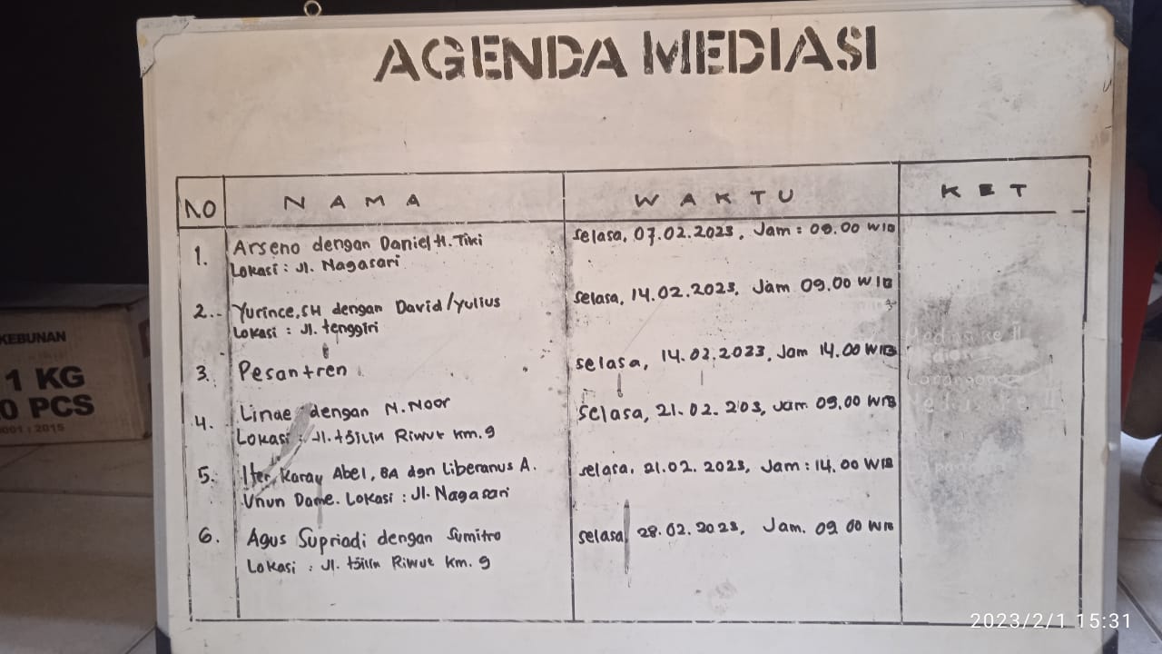 Lebih lanjut dia mengatakan, terkait mediasi itu pihak kelurahan juga harus melihat, apakah dari pihak yang akan dimediasi ada di tempat tinggalnya atau tidak. Kalau tidak ada, tidak mungkin juga dilakukan mediasi.